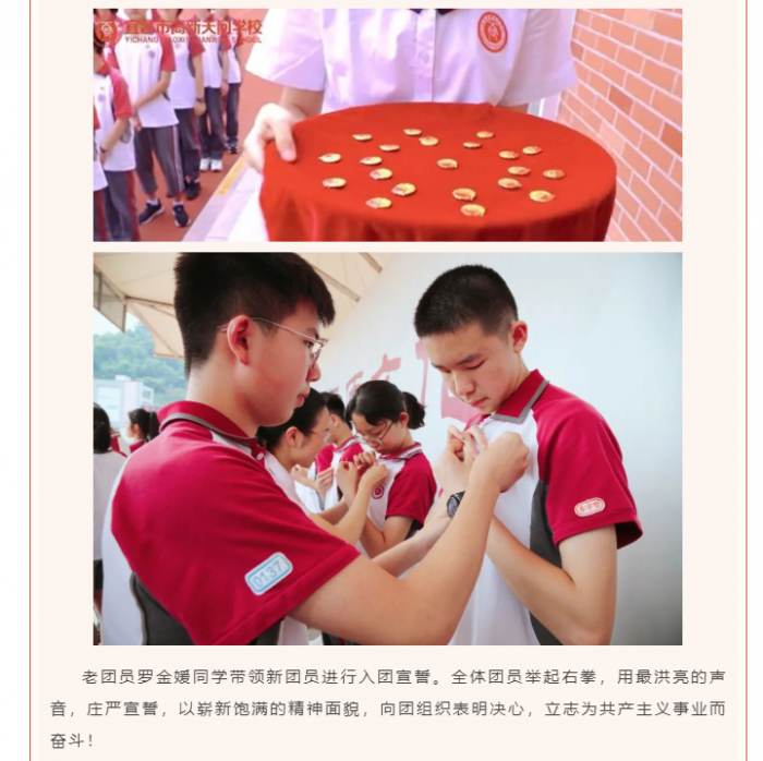 为喜迎党的二十大,庆祝中国共产主义青年团成立100周年,传承和发扬“五四”精神,不断提升共青团组织力、凝聚力、战斗力,充分展示师生蓬勃向上的精神风貌,高新天问初中团组织围绕“喜迎二十大 永远跟党走 奋进新征程”主题组织开展了入团表彰活动。