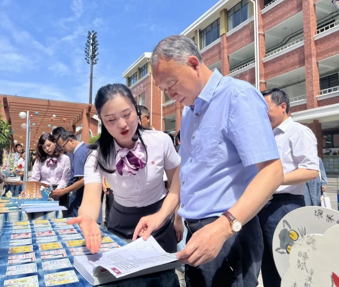 在高新区天问学校小学部的童话广场,王均成一行先后查看了学校屈原文化建设的系列展示,现场观看了四年级学生的每周国学诵读活动。