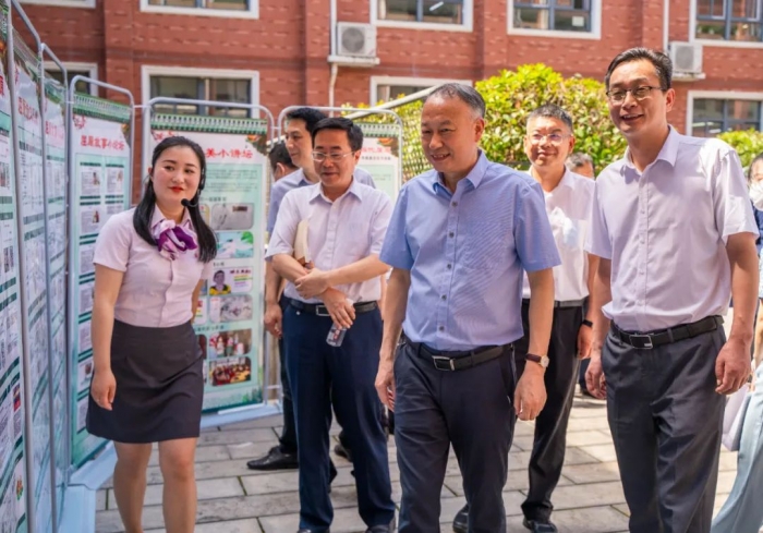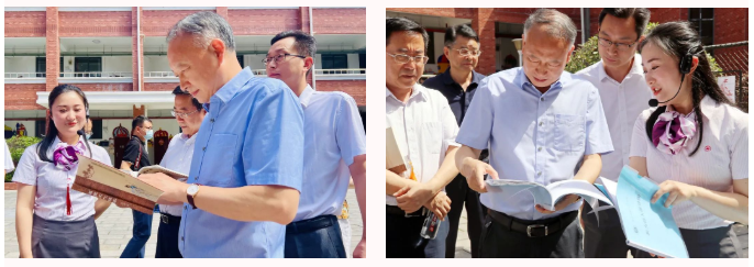 王均成边走边看,频频点赞天问学校传承弘扬屈原文化所取得的成绩,充分肯定天问学校把屈原文化融入德育教育和课程教学各个环节有特色有亮点。并强调“要助力擦亮屈原文化地标,打响屈原文化品牌。”