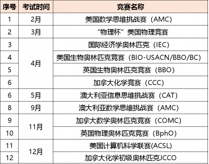 天问国高国际竞赛年度安排表