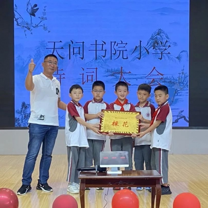 2022年6月2日,天问书院小学举行了第四届书院诗词大会,全仿真央视诗词大会:九宫格、十二宫格、上下对、诗配画、文化常识、飞花令........赛场上,选手个个摩拳擦掌,意气风发,没抢到答题权的同学不禁扼腕叹息,抢到答题权的同学饱含兴奋之情说出问题答案。台下的观众不禁被台上的紧张激烈的氛围感染,时而鼓掌喝彩,时而屏息凝神。