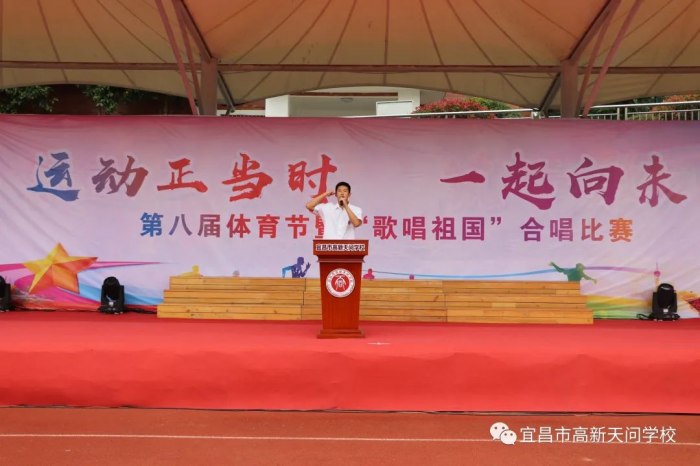 高新天问初中第八届体育节暨“歌唱祖国”合唱比赛在学校操场盛大开幕。