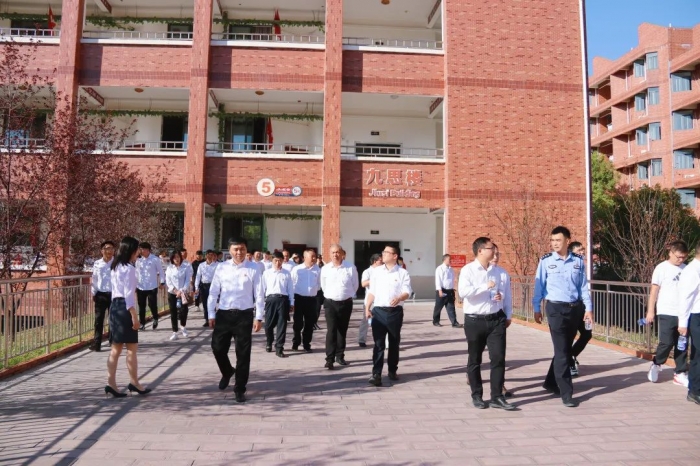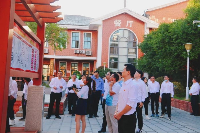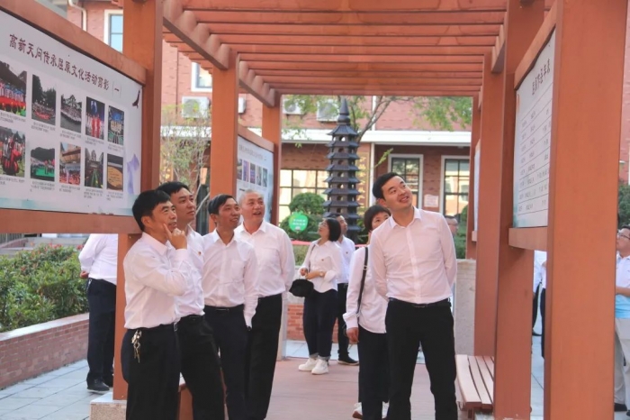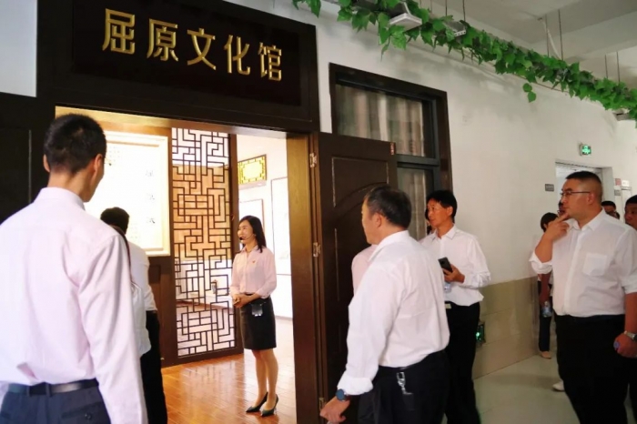 天问教育集团党委书记、总校长高正华带领干部们参观校园环境和屈原文化长廊,深入了解屈原文化在学校教育中的重要作用。
