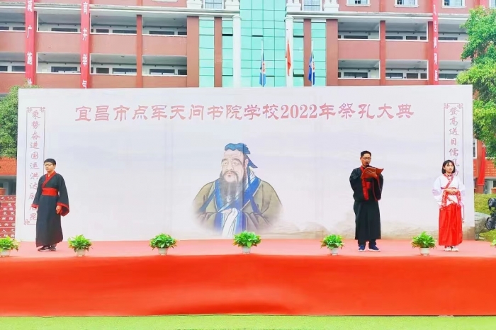 参天之木,必有其根;怀山之水,必有其源。 先圣孔子,将其深刻的思想精髓、高远的价值取向,贯注到中华民族的文化生命中;儒家思想也成为了中华民族文化宝库中,最为珍贵的财富。9月28日,天问书院全体师生齐正衣冠、庄严整肃,以虔诚之心、崇仰之情,举行第八届祭孔大典。 “其身正,不令而行;其身不正,虽令不从......”千余名学生的齐诵声洪亮而振奋人心。吟诵经典,让民族精神在血脉中流淌。 鼓乐雄浑,庄严肃穆。仪式主祭官顾景荣院长身着汉服,率领担任陪祭官的初中部彭灿校长和小学部袁霖淋校长缓缓走到孔子像前敬献花篮,随后顾院长上台致祭辞,他鼓励孩子们高举儒家修身为本的精神,养成“温良恭俭让”的气质,追求“仁义理智信”的境界,将中华传统文化继承和发扬下去。 魂销万古,合德民心千秋事;颂拜今晨,后事始记圣人恩。 全校师生怀虔诚之心,肃正伫立向先师孔子行三拜礼:一拜孔子孝亲尊师,二拜孔子传承经典,三拜孔子勤学笃志。 随后,天问书院全体学生满怀赤诚,向辛苦培育自己的老师深深鞠躬。 天地不仁,以万物为刍狗,幸而天生孔子,以成至圣先师,闻乐知德,观舞澄心,识礼明仁,礼正月垂,大赞孔子。 清幽古调,舞韵翩翩。初中部和小学部学子精心准备、倾情献上顾景荣院长所作的《孔子赞》朗诵以及歌伴舞《孔子说》,乐诵和鸣,响彻天际。 淮夏之衣,烈山有鼎。国学漫漫,长乐未央。我辈学子,应学先贤,潜心向学。 新学期,天问书院启动了“与诗同行,启美塑魂”诗教活动,本次“祭孔大典”也是同祭先师,传承中华传统文化。 弘扬传统文化,根植爱国情怀。天问书院还将通过寻诗、研诗、品诗等9大主题活动,弘扬中华传统文化,坚定文化自信,增强民族自豪感。