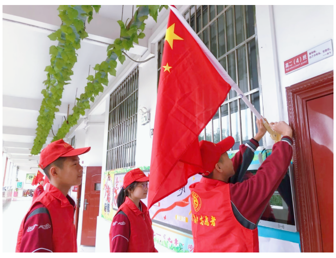 今年是党的二十大召开之年,也是中华人民共和国成立73周年,天问高中青年志愿者服务队在国庆节前夕,为全校各班教室门口挂上了鲜艳的五星红旗为祖国庆生。整座校园装点着幸福的“中国红”,一面面国旗,诠释着同学们的自豪感,也承载着对国家的归属感。随风飘扬的五星红旗,不仅让全体师生感受到了浓厚的节日氛围,更展现了天问高中学子昂扬向上、努力奋斗的精神风貌。