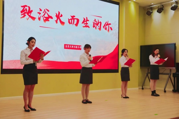天问书院小学教师的诗朗诵《致浴火而生的你》带大家走进那段激情昂扬的奋斗岁月。