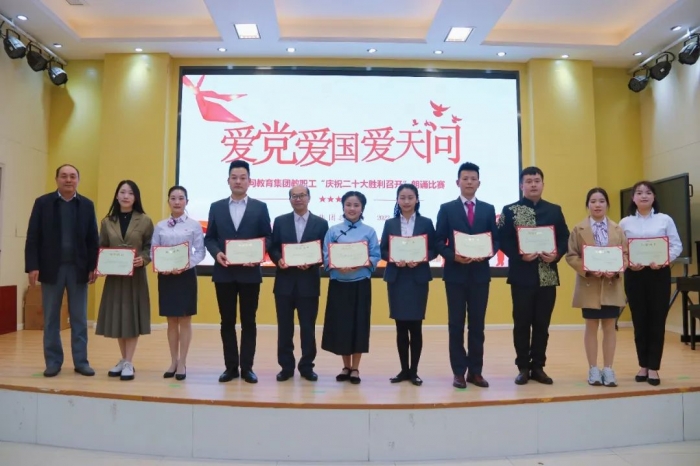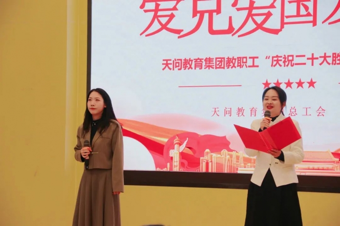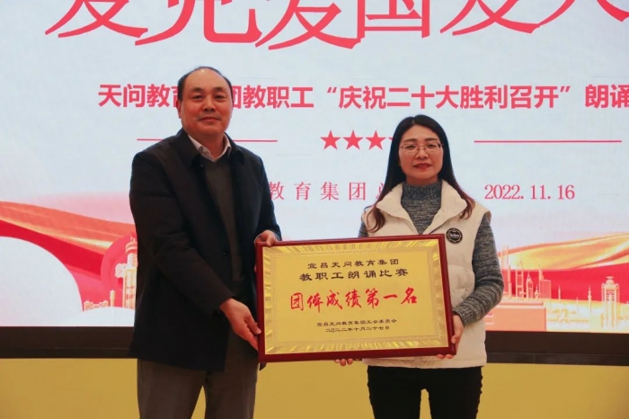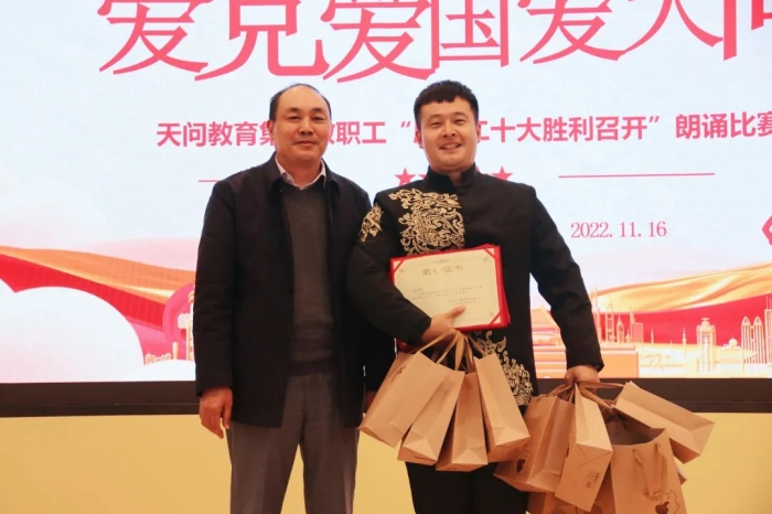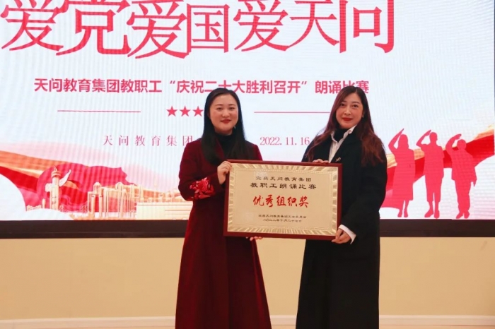 11月16日,天问教育集团“与诗同行,启美塑魂”诗教活动之“颂歌献给党,喜庆二十大”教职工朗诵比赛在高新天问校区拉开帷幕。