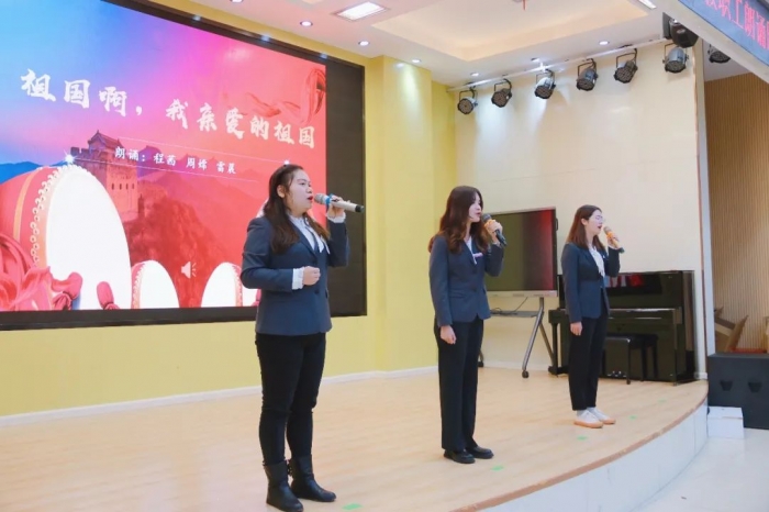 高新天问初中教师朗诵了《祖国啊,我亲爱的祖国》。