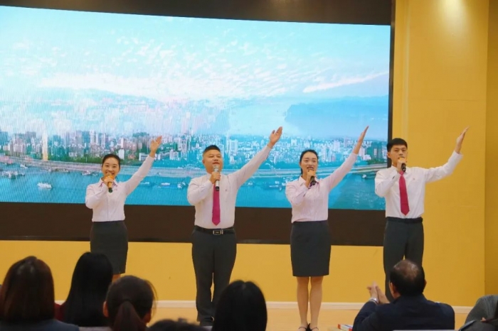 夷陵天问幼儿园青年教师带来诗朗诵《新中国 新时代 新征程》。