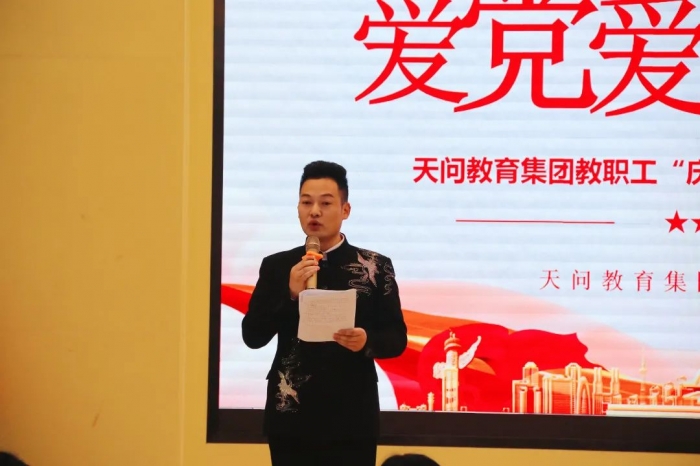 天问高中教师刘飞深情并茂地朗诵了《百年奋斗,百年辉煌》。