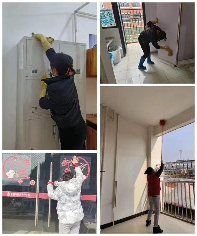 老师们全覆盖无死角,进行开学前大扫除。做到清洁、细致、到位,“净”候学生们回家。校园的每个角落都能看到老师们忙碌的身影……