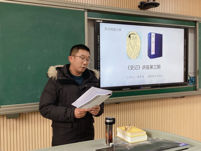 中午,天问书院小学全体教师共聚《史记》国学大讲堂。由顾景荣院长为我们讲述。