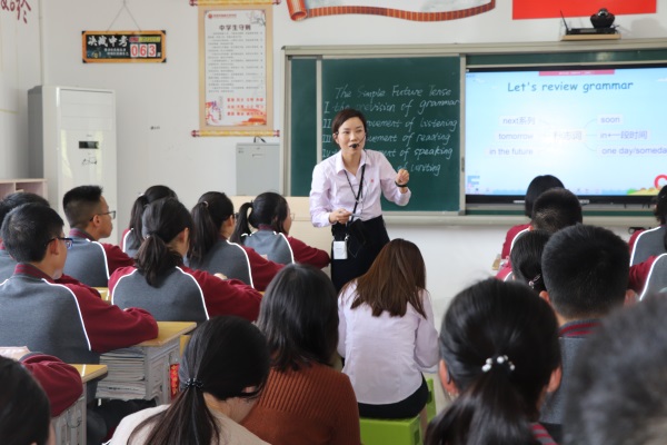 谭教研和全体与会教师首先观摩了由高新天问初中英语教师许长春执教的中考英语复习课。授课的内容是复习一般将来时。在此次复习课上,许长春老师以”dreams”为主题,通过一段电影视频引入授课的主题和内容,借助游戏“消消乐”和“砸金蛋”的环节实现了对时态的标志词与句式等基础知识的复习和巩固。并在授课过程中成功实现了对学生听、说、读、写各项基本能力的训练。课堂完整流畅,主题鲜明,主线突出,学生的主体性得到很好地体现。据悉,在前期磨课过程中,谭教研多次莅临指导,新初英语团队群策群力,成为坚实的后盾。