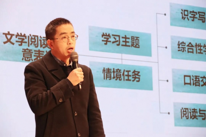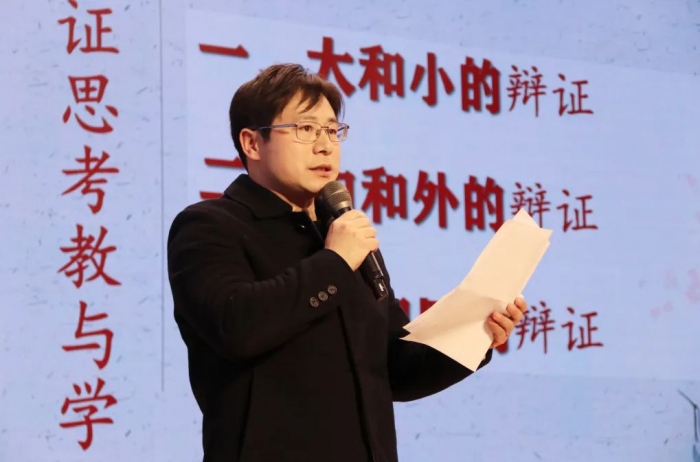 他强调,一堂好课可以磨砺自我,吸引学生,成就老师,每一个优秀的老师都是由一堂堂好课磨砺出来的。 现场,李老师列举了很多文言文教学中可以抓住一词带动全篇的例子:《三峡》的“趣”、《答谢中书书》的“美”、《记承天寺夜游》的“闲”、《湖心亭看雪》的“独”…… 一堂好课的具体方向在哪里?李老师告诉大家:一是围绕主旨的发掘而展开;二是寻找好的切入口;三是拥有逻辑思辨的力量;四是具备灵动的教学方法。 最后,李老师呼吁大家,“上好每一堂语文课,做幸福快乐的语文教育人!”