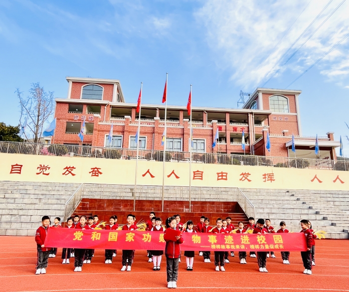 2023年3月6日,高新天问小学102纷缊班的学生们在国旗下展示,为全校师生介绍国家功勋人物袁隆平。