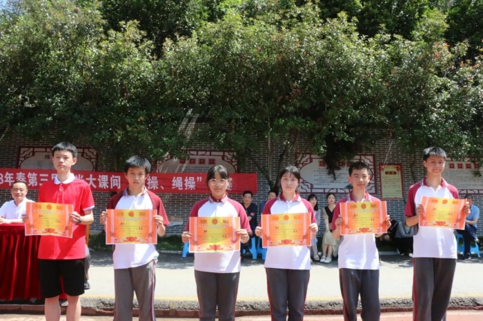 紧张激烈的比赛后,举行了颁奖仪式。校领导为获奖班级颁发奖状: