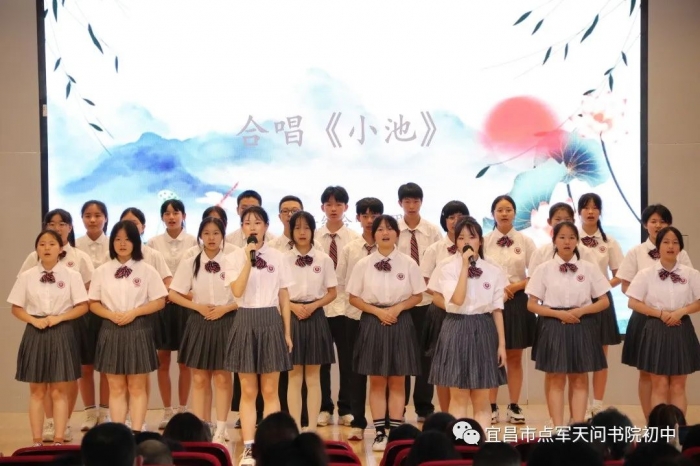 七八年级的同学们展示了大国学、大阅读、大社团课程中形成的成果,课本剧《屈原》、诗词朗诵《金戈铁马》、合唱《小池》,展现了书院学子的风采,现场气氛热烈,掌声经久不息。