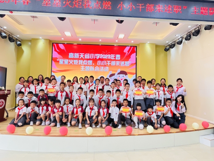2023年6月15日,高新天问小学2023年春季少先队工作期末述职大会在报告厅隆重举行。