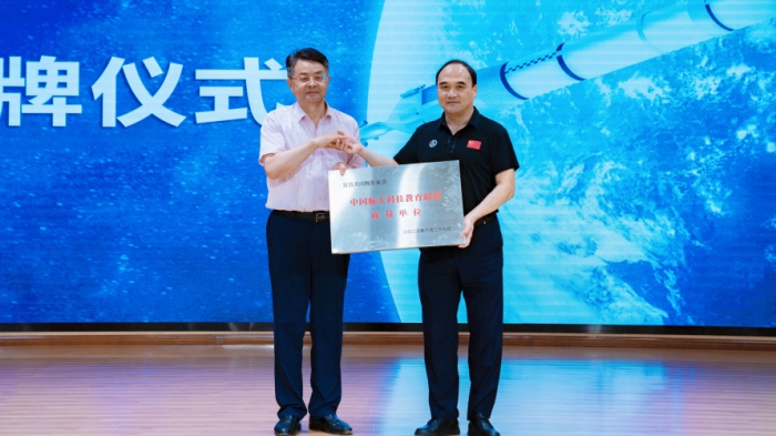 周岫彬博士代表中国航天科技教育联盟为天问教育集团授予“中国航天科技教育联盟成员单位”匾牌。