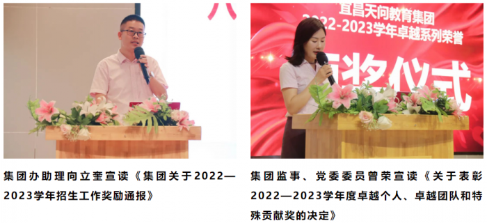 集团部门相关负责人宣读了《关于表彰2022—2023学年度卓越个人、卓越团队和特殊贡献奖的决定》等文件。