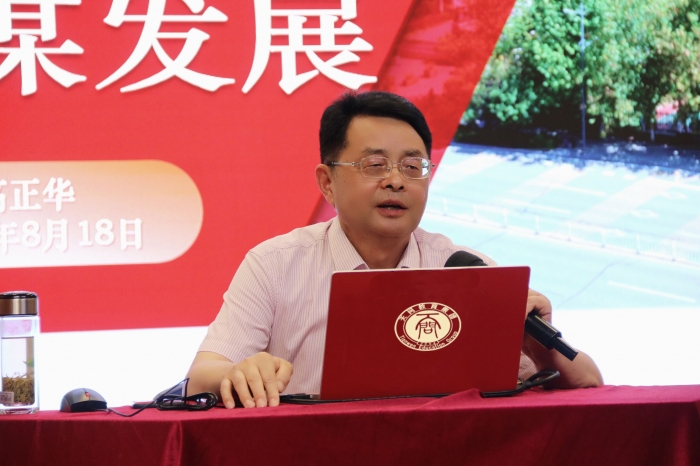 集团总校长高正华以《共创基业 共创品牌 共谋发展》为题,围绕核心能力、创新优势、未来方向等版块,作学年工作报告。