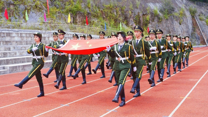 敬礼国旗,表白祖国。国旗班的学生踏着坚定铿锵的步伐,向社会各界展现了长乐天问人的勃发英姿。