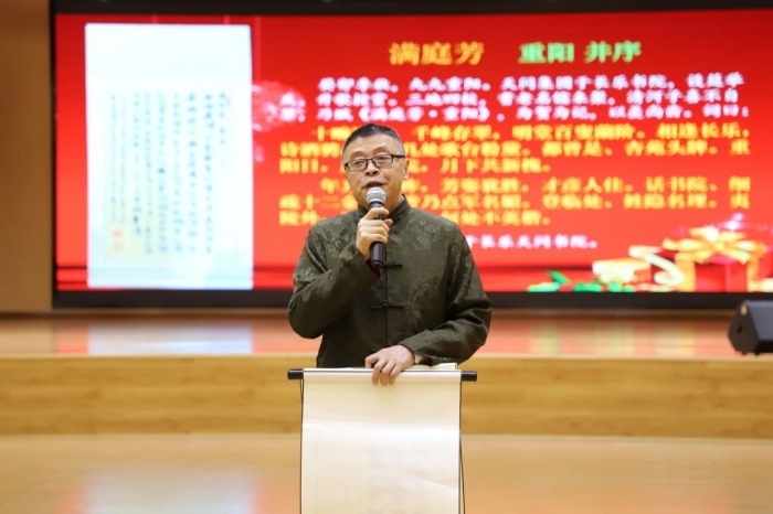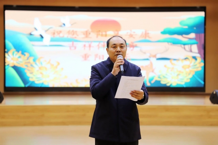 天问高中校长王少斌致欢迎辞。他表示,天问高中部五峰长乐坪校区是天问教育集团最年轻的校区,在这里开展重阳活动,赋予了这个传统节日新的内涵。这里,高级教师占比40%,来自省级示范高中教师12人,湖北省特级教师2人,正高级教师3人。有家长感叹:此学习圣地,藏龙卧虎,人才济济。 山中何所有,岭上多白云;此间最愜意,往来皆名流。希望老教师们在此度过一个舒心愉悦的重阳节。 集团工会主席姚太权致辞,他深情回望天问创办之初由一个校区300余名师生,发展至今五个校区近万名师生,近日更是获得了宜昌市第五届三峡质量奖提名奖,航天科技教育正在成为天问又一张响亮的名片……所有这些,都是天问人孜孜以求,不断奋斗的结果!更是坚守天问的老同志们以身作则、率先垂范,传帮带的结果。莫道桑榆晚,为霞尚满天! 夷陵校区教师代表屈定香老师深有感触,她表示,岁月不是问题,要继续延伸人生的足迹与希望,把人生的梦想欢欢喜喜地坚持到底,做到老有所为,老有所乐。为自己,为天问,发挥余热,做力所能及的事情。为学校增添正能量,为自己守住教育梦。 高新校区教师代表高晓玲作为高新天问小学唯一的老教师代表,她笑言,这恰恰证明了新小拥有一支年轻的教师队伍,自己也将珍惜在新小的每一天,为这群朝气蓬勃的师生们提供更好的服务。 天问高中部五峰长乐坪校区杨邦俊老师现场有感而发,自创、自书、自吟一阕长调《满庭芳·重阳》,赢得在座宾朋满堂彩。 书院校区教师代表顾景荣院长以三十六岁的毛泽东为例,一边感叹“人生易老天难老,岁岁重阳,今又重阳” ,但随之爆发出的是“一年一度秋风劲,不似春光,胜似春光,辽阔江天万里霜”的豪情万丈,他勉励所有老教师,要保持三十岁的心态,四十岁的精力,五十岁的经验,六十岁的练达,七八十岁的通透。在追逐教育梦想的道路上且歌且行。 集团总校长高正华致祝酒辞,正值天问创办以来度过的第20个重阳节,他感慨万千,此次相聚长乐,意在慰问天问所有的老教师们,更要慰问扎根在长乐坪校区的第一批老教师们,他畅想天问未来的发展,激励老教师们继续在各自的岗位上发光发热,为幸福快乐的教育事业携手共进,矢志奋斗。 来自长乐天问校区的青年教师代表陶璐琪和刘飞老师带来美妙的歌曲,为现场老教师们献礼。晚宴后,老师们或高歌一曲,或切磋棋艺,开启才艺大比拼,气氛活跃而不失温馨,度过了一个惬意难忘的夜晚。