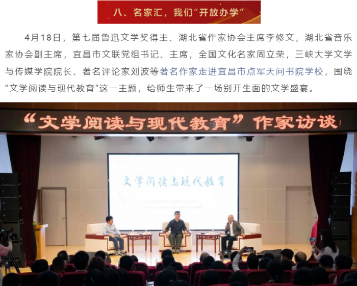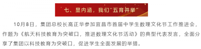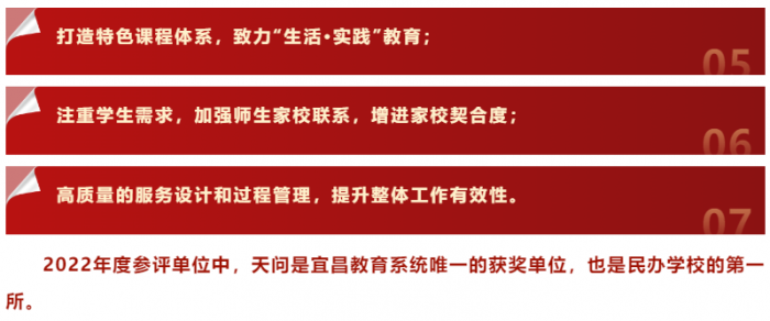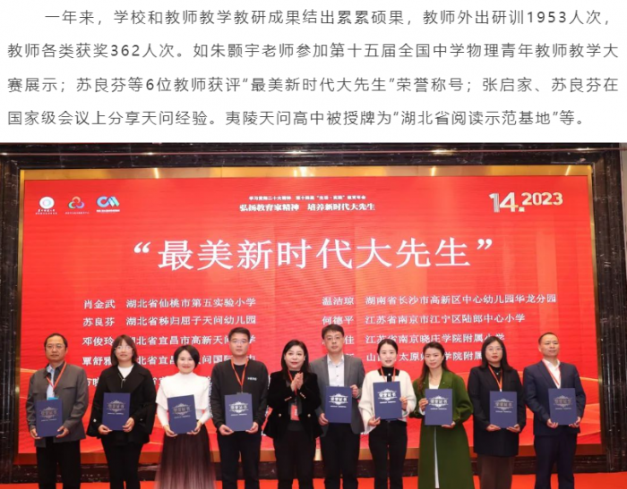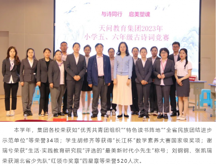 5月17日,“全市两新组织党建拉练活动”在夷陵校区举行,市委教工委副书记、市教育局党组书记、局长邓玉华;市委教工委专职副书记、市教育局党组成员黄赤蓉等负责人到校指导工作。上半年,集团各党支部均被市教育局直属机关党委认定为“先进党支部”;夷陵天问学校获得夷陵区“文明单位”荣誉称号。天问高中参加现代化先进学校申报及评比。后勤食堂工作受到市级会议表彰,夷陵校区报告厅重建完成,硬件设施升级提质。