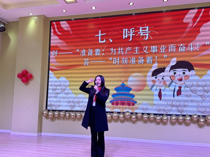 大队辅导员黄求静老师带领呼号:“准备着,为共产主义事业而奋斗!”