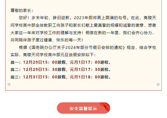 过往凡序章 未来皆可期——夷陵天问学校高中部元旦放假通知