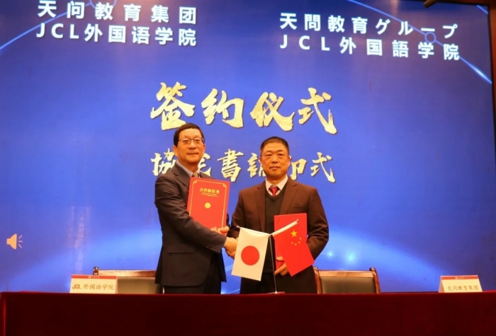 携手同行,共赢未来。天问高中学段校长王少斌与木村研治先生签订项目合作协议。天问教育集团将与JCL外国语学院强强联合,携手开设天问中日班,通过整合优质资源,实现课程体系、教学资源及师资力量的全方位深度合作,为学生提供多元、高效的学习体验与发展机遇。