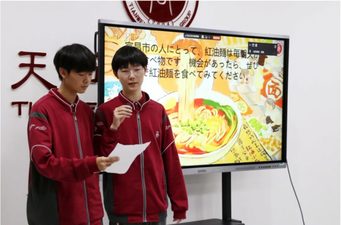 天问高中的学生用流利的日语进行了内容丰富、形式多样的分享——从宜昌地道的红油小面,到多彩的课外活动,再到深受欢迎的动漫《龙族》,生动展现了中国青少年个性鲜明、全面发展的真实风貌。