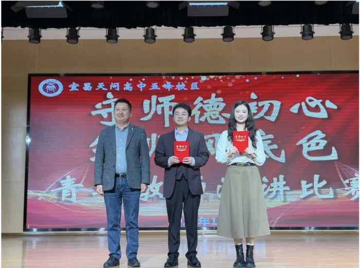 活动开场,天问高中五峰校区副校长邓士木率先登台致辞。他直言,青年教师是学校教育事业的 “新鲜血液”,而师德师风则是教师的 “立身之本”,本次比赛不仅是校区“风纪整治月”的关键环节,更是青年教师交流成长的“练兵场”。