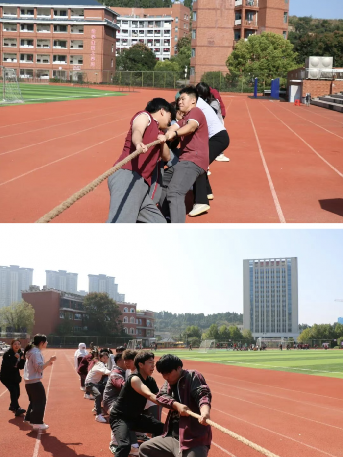 拔河赛场上,选手们紧握长绳、重心下沉,心往一处想、劲往一处使,在拉扯间凝聚起班级的向心力……