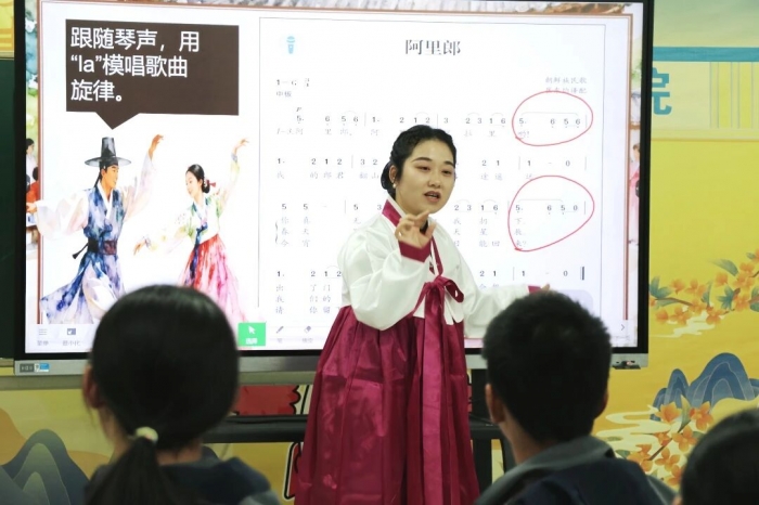 音乐学科由天问名师曾诚执教歌唱课《阿里郎》,通过情感导入、多声部实践与朝鲜族文化拓展,呈现了一堂兼具艺术性与人文性的音乐课堂。