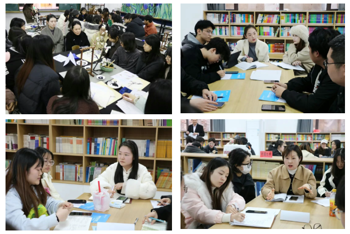 课后,全体参与教师围绕课例分小组展开评课议课。双方教师从教学设计、学生反馈、美育渗透等角度展开深度交流,高校教师从理论视角提出优化路径,中小学教师分享了一线实践智慧,与会大学生则从观摩视角一一阐述了个人见解。这种多方视角的观课议课,突破了传统教研的界限,形成了“理论—实践—反思”闭环,真正实现了智慧共享、教学相长。