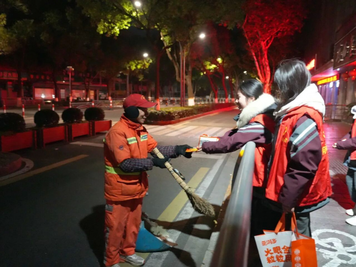 “暖冬行动”便是这趟温暖旅程中最动人的篇章,它已成为我高中岁月里最珍贵的记忆。每年十二月最后一个周六的凌晨四点半,当整座城市还在安眠,我们已披着星光、踩着晨霜,相聚在CBD中央大街。记得去年那个格外寒冷的清晨,呵出的白气在路灯下氤氲成雾,我们搓着冻得通红的双手,将一枚枚暖宝宝递到环卫工人手中。一位阿姨接过温暖时,眼眶微微发红:“这么冷的天,孩子们还惦记着我们……”她质朴的话语,让我忽然懂得:真正的担当,不在于豪言壮语,而在于这份将心比心的理解;青春的价值,不仅在于个人的成就,更在于能够为这个社会点亮一盏温暖的灯。