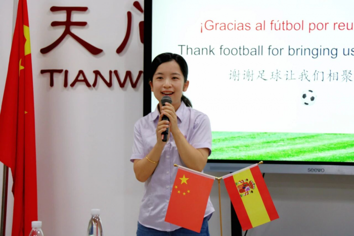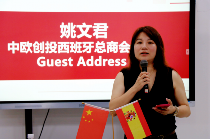 中欧创投西班牙总商会会长姚文君感谢天问师生的热情接待。