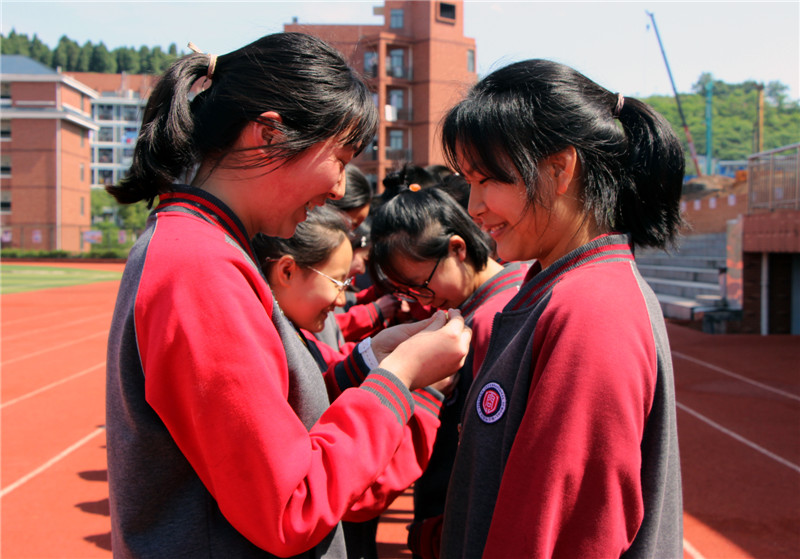 5月8日,天问国际初中开展了纪念“五四运动”100周年暨2019年新团员入团仪式,21名同学正式成为光荣的中国共产主义青年团的新成员,新团员佩戴上团徽后进行了入团宣誓。