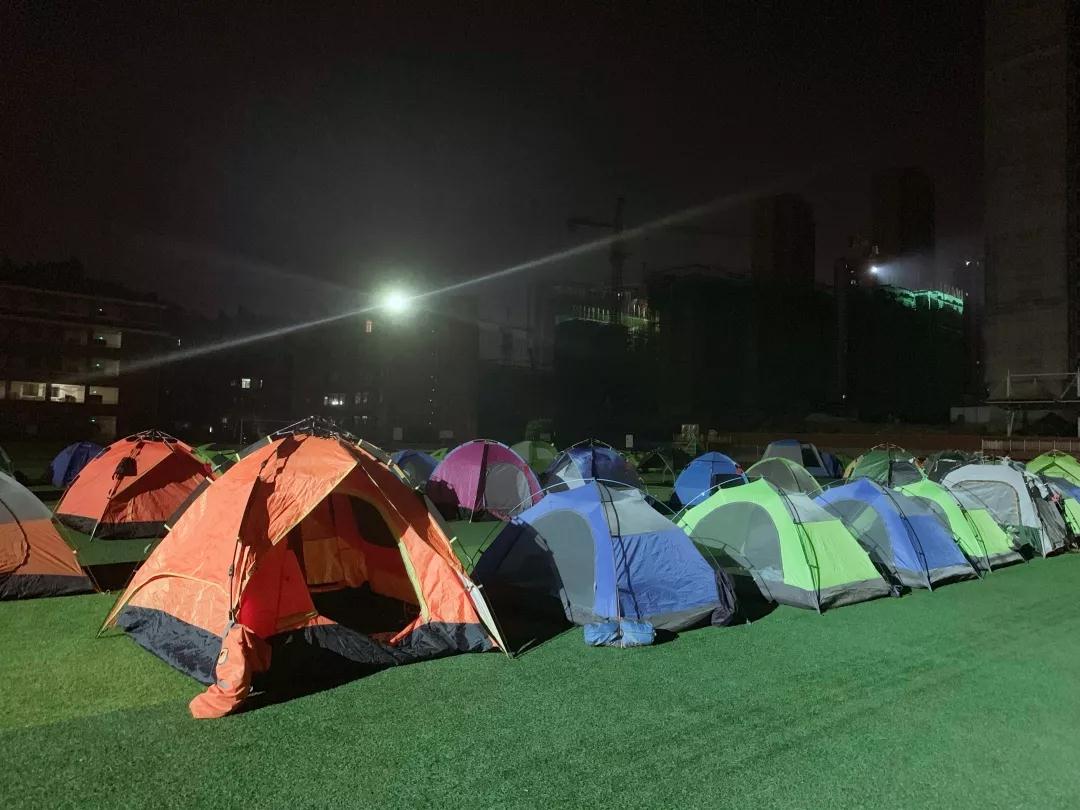 操场上支起小帐篷,在老师们倾情的陪伴下,孩子们闻着草香,数着星星,诉说着小秘密,悄悄入眠......