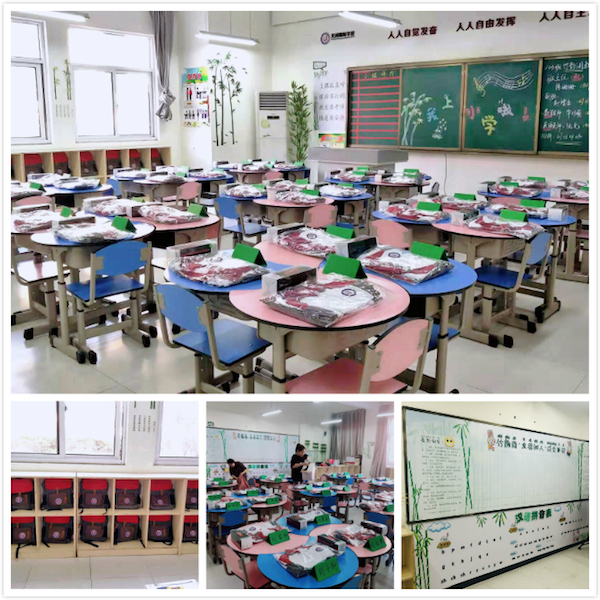 一年级的教室也盛装迎接小朋友们呢!一间间富有年级特色的主题教室、一张张摆在花瓣桌上的姓名卡,一株株挂在班牌上的水培绿萝,还有站在教室门口迎接孩子们的老师们,她们笑容可掬,温柔可人,有条不紊地接待前来报到的孩子们。