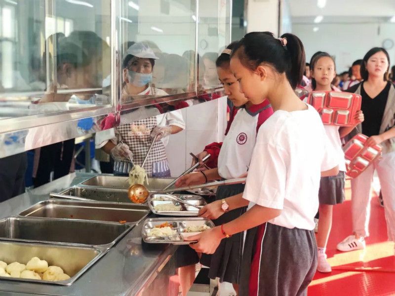 “华英楼”洋溢出阵阵飘香,每当这时,饥肠辘辘的学子们放下书本,排着整齐的队伍,依次来到餐盘前打餐,食堂内井然有序。