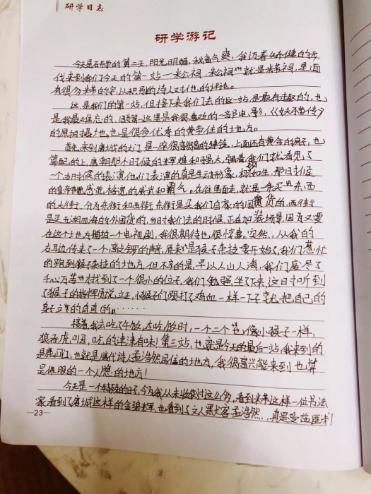 书院学子于东市登高赏美景,于西市驻足观舞狮,仿佛置身节日的街巷里,欢歌笑语!大唐的辉煌历史顿时在学生的头脑中鲜活起来,还有一些学生,把精妙的对联、诗句用笔摘录下来,带手机的学生更是不放过每一个摄相的机会,风景、建筑、人文一一都不放过。