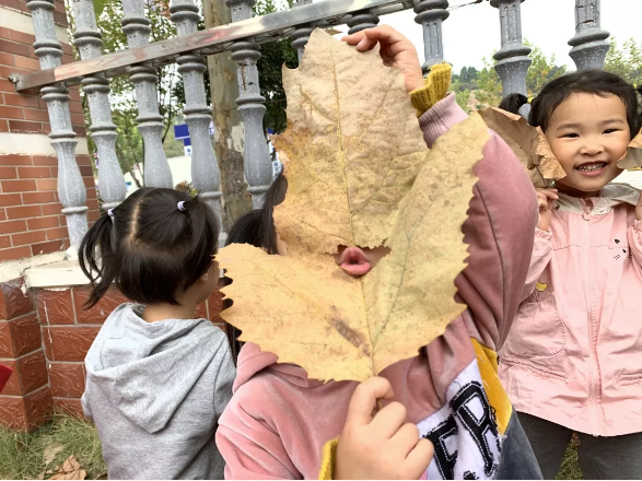 秋天的大自然慷慨地赠予孩子们无边的乐趣。漫天飞舞的叶子成了小六班孩子们最亲密的游戏伙伴。