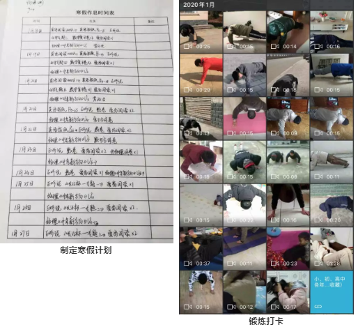 天问国际初中刘广钰老师号召同学们制定个性化的寒假计划、小视频锻炼打卡,并进行验收。