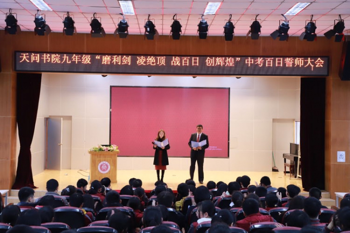 3月12日,宜昌天问书院初中九年级中考百日誓师大会在学校报告厅举行。...