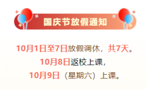 金秋时节,硕果飘香。我们即将迎来国庆小长假,借此机会,高新天问初中衷心祝福各位家长和同学们节日愉快、阖家欢乐!...