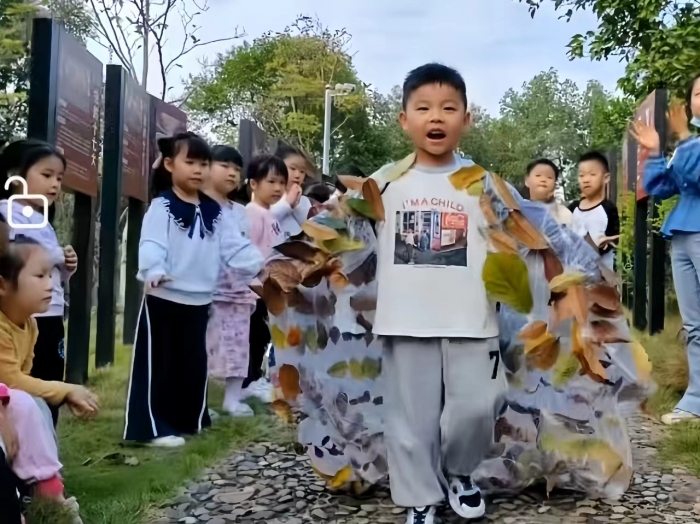 这次的自然课程,让我们的孩子近距离知道了树叶的种类和颜色。更让我们的孩子大胆设计和创作。这件“独一无二”的衣裳,我们带回教室,一直将挂在我们植物角展出...