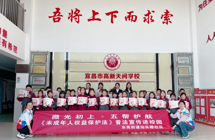 近日,高新区东苑街道汕头路社区、宜昌鹏捷社工服务中心联合湖北百思特律师事务所,共同走进高新区天问小学301班,举办了一场主题为“微光初上·五帮护航——...