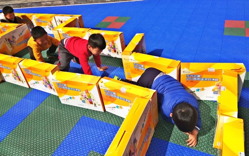 利用一个个废旧的纸盒,连接成许多的小道,让孩子们在“山洞”中穿行,在“山洞的角落里藏着许多的”宝藏“呢!请跟随孩子们的脚步一同来领略迷宫的风采吧!Let's go!
